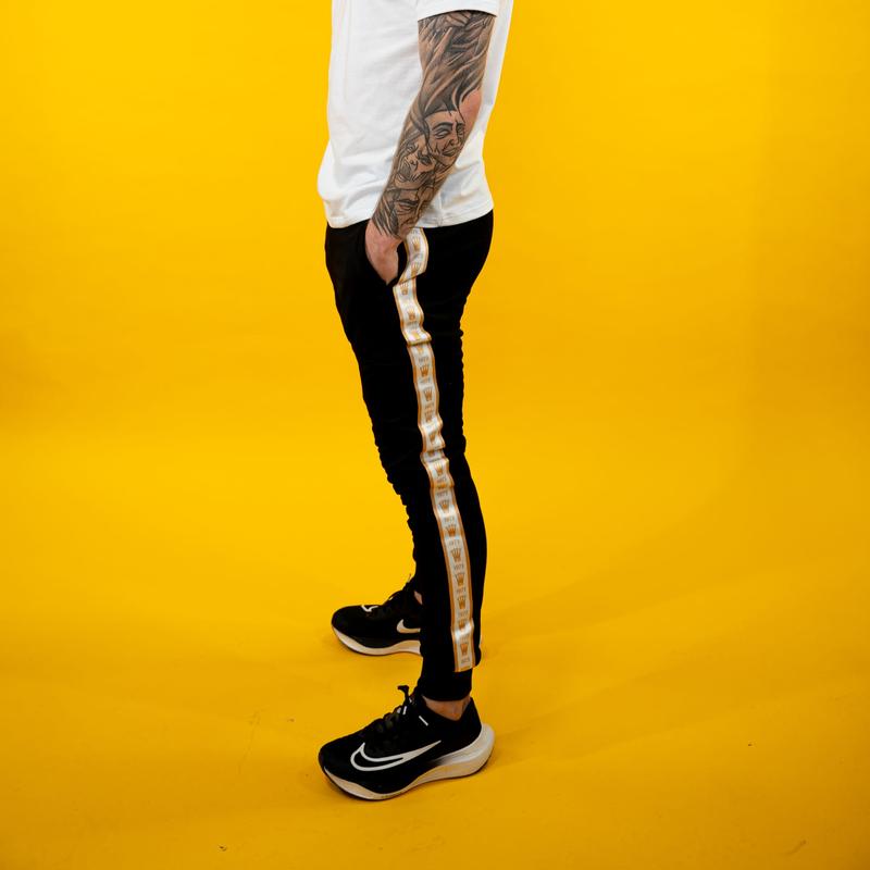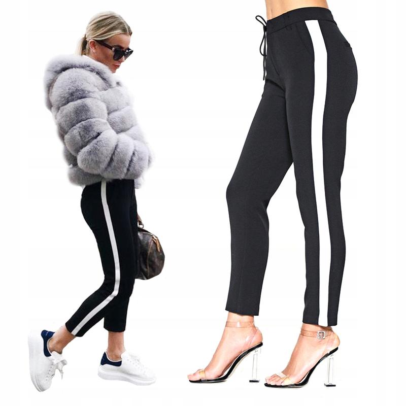 Do dresowych spodni z lampasami najlepiej pasują sneakersy, które tworzą sportowy akcent. Natomiast, jeśli zdecydujesz się na fason ze ściągaczami, szpilki będą doskonałym wyborem, który doda elegancji twojemu wyglądowi.